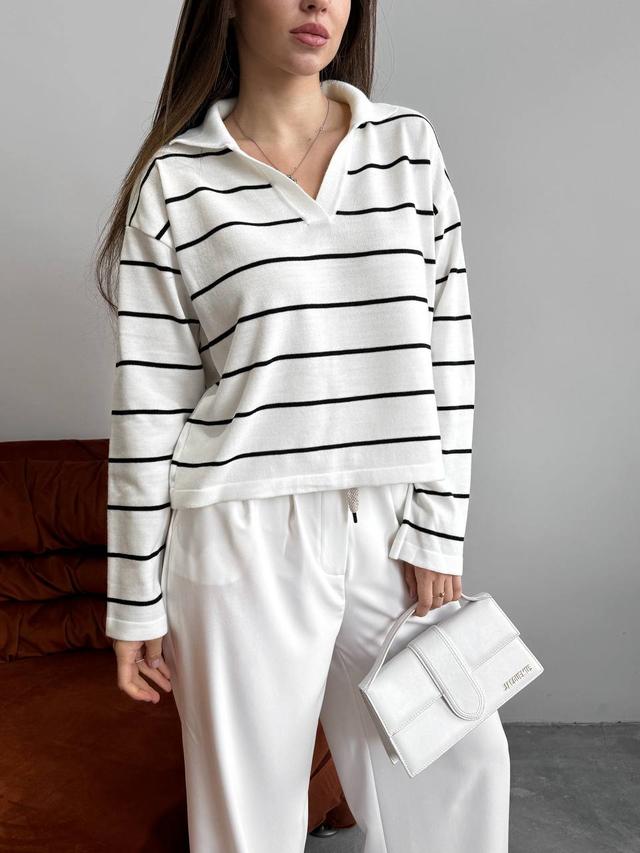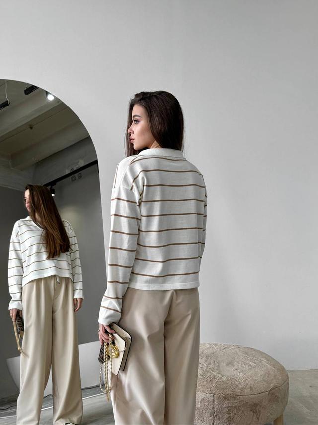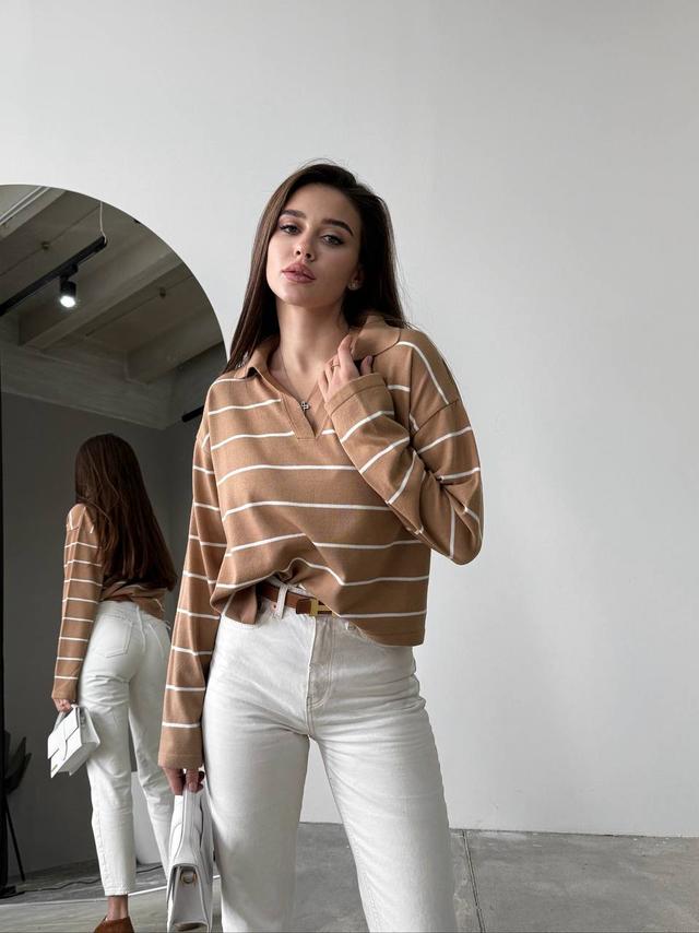 Ця жіноча кофта-поло в смужку стане вашою улюбленою базовою річчю для створення як повсякденних, так і вишуканіших образів. Вона поєднує в собі простоту, стиль і комфорт, підкреслюючи вашу індивідуальність щодня.