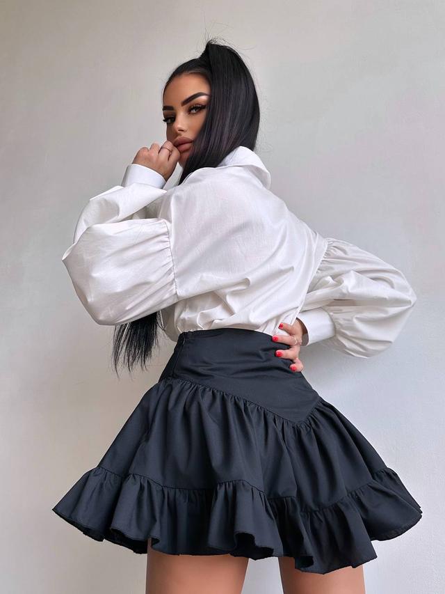 Цей елегантний комплект із сорочки та спідниці стане ідеальним вибором для створення стильного та свіжого образу. Сорочка з об'ємними рукавами ліхтариками та класичним кроєм чудово поєднується з елегантною спідницею із завищеною талією, яка підкреслює фігуру.
