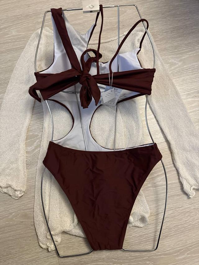 Завдяки асиметричним вирізам купальник робить акцент на талії, візуально подовжує ноги та підкреслює силует. Глибокий коричневий відтінок має дорогий та елегантний вигляд, ідеально підходить як для пляжного відпочинку, так і для фотосесій, вечірок біля басейну або SPA.